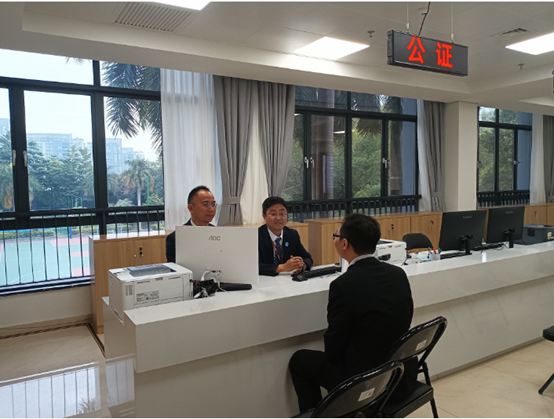 深圳公证处进驻公共法律服务中心并设立服务窗口,将为周边市民提供家事、出国、金融等“一站式”、“全流程”公证服务,并与法律援助、司法鉴定、法律咨询等其他公共法律服务模块紧密配合,优化提升公共法律服务结构与功能布局,及时承接寻求公共法律服务的群众公证需求,助力打造“全方位”法律服务平台,提供均等普惠、便捷高效的公证服务,搭建起法治政府和人民群众的连心桥。